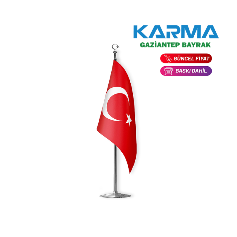 L Tipi Düz Kesim Masa Bayrağı (Direkli)
